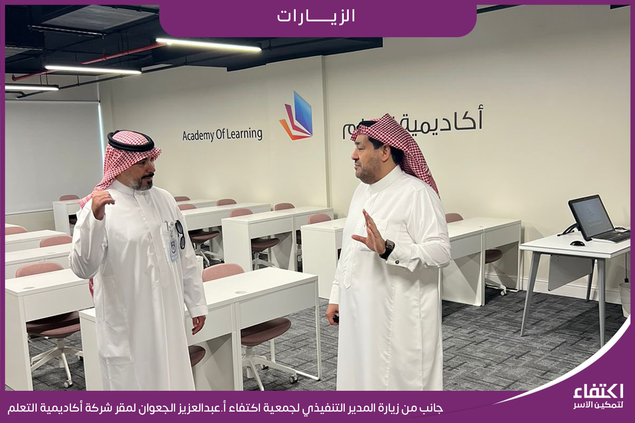 جانب من زيارة المدير التنفيذي لجمعية اكتفاء أ.عبدالعزيز الجعوان لمقر شركة أكاديمية التعلم وكان في استقباله نائب الرئيس التنفيذي للأكاديمية أ.محمد الجهوري